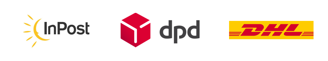 Przesyłki realizowane są także za pośrednictwem firm kurierskich DHL (dostawa pod wskazany adres lub do punktu odbioru).