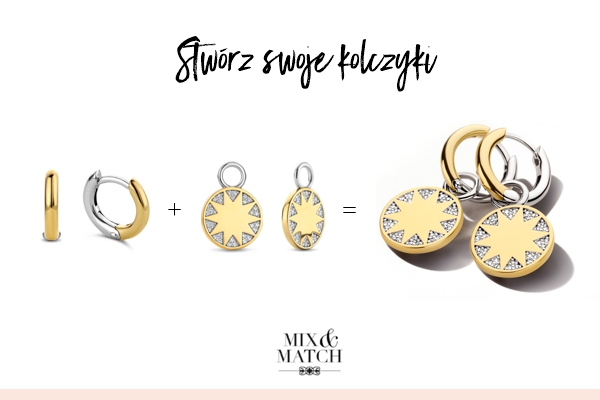 Kolczyki marki TI SENTO - Milano. Kolczyki - kółeczka, zdobione lśniącymi cyrkoniami pave osadzonymi na 18-karatowym złocie. Idealnie prezentują samodzielnie, jak i z zawieszkami do kolczyków Mix&Match.